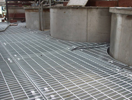 污水廠用鋼格板 污水處理廠用鋼格柵其特點為: 1、強(qiáng)度高:牢固的網(wǎng)格壓焊結(jié)構(gòu)使其具有高承載; 2、結(jié)構(gòu)輕:便于吊裝等特點; 3、外形美觀,經(jīng)久耐用:熱浸鋅表面處理使其具有相當(dāng)好的防腐能力,表面光澤美觀; ···
